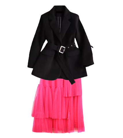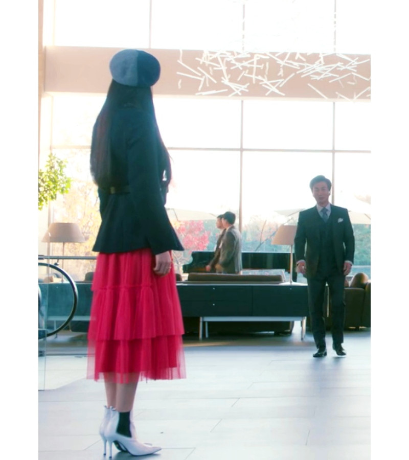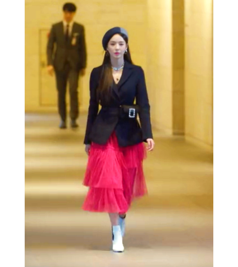 Don't miss out on this eye-catching and stylish trenchcoat-like jacket and asymmetrical tiered cupcake skirt outfit ensemble that she was spotted wearing in the drama, "Beauty Inside"!
