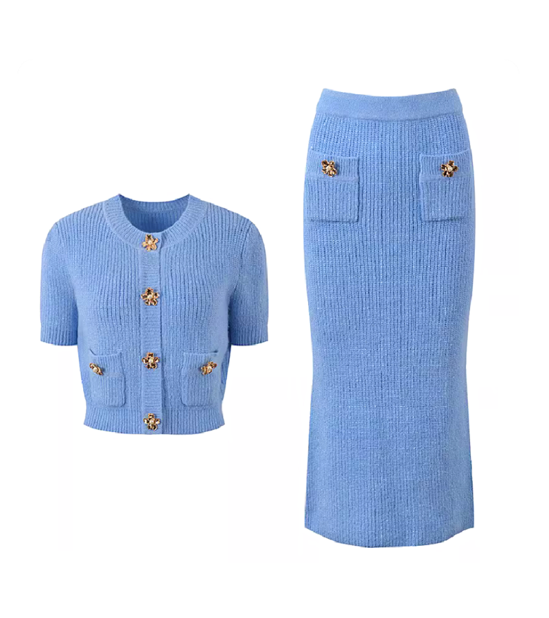 If Cha Mu-hee's stunning and captivating wardrobe as a top celebrity has captured your attention then you definitely should not miss out on this charming set of flurry blue crop top and skirt set that is inspired by that worn by Go Youn-jung in "Can This Love Be Translated?"