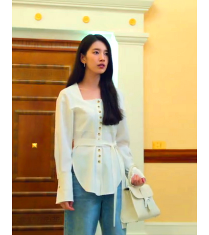 If you are a fan of the stylish wardrobe of Ga-Young in "Genie, Make A Wish" then you definitely must not miss this minimalistic pure white tote bag with a locket-like clasp, inspired by that seen on Bae Suzy in the drama!