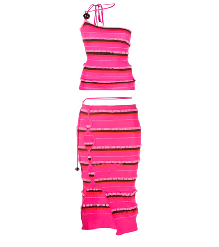 If the cold beauty and fashion model, Kim Go Eun (김고은), has captured your attention with her bold and attractive fashion choices then you definitely must not miss this piece of pink striped top and skirt set (which are each sold separately) that are available in limited pieces and will not be restocked once sold!