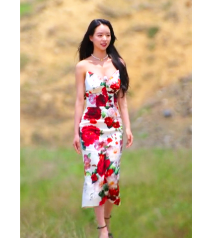 If the bright former cheerleader, Park Hee-sun (박희선), has captured your attention with her sweet looks and sunshine personality then you definitely must not miss this inspired piece of sexy bustier dress with strikingly beautiful floral patterns that she wore in the premiere episode!