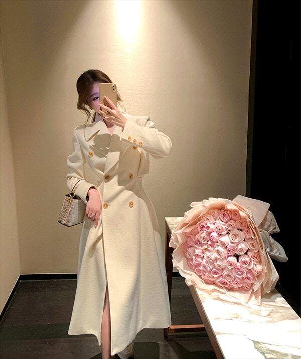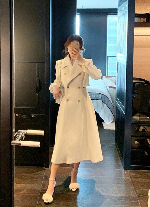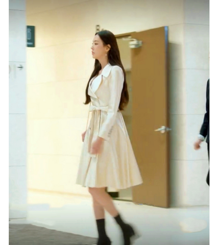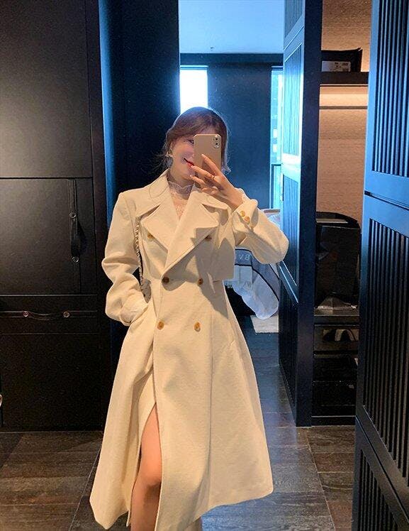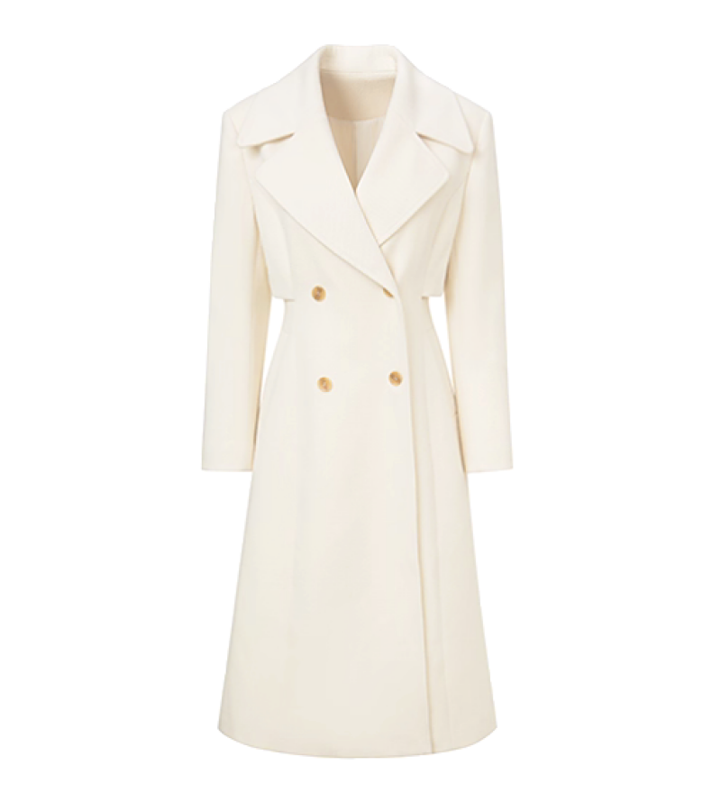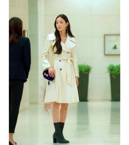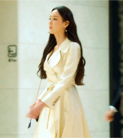 Beauty Inside Kang Sa-ra (Lee Da Hee) Inspired Coat 001 - XS / Slit Cuts at the Side (No Trenchcoat Belt) / Milk White