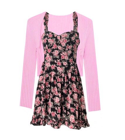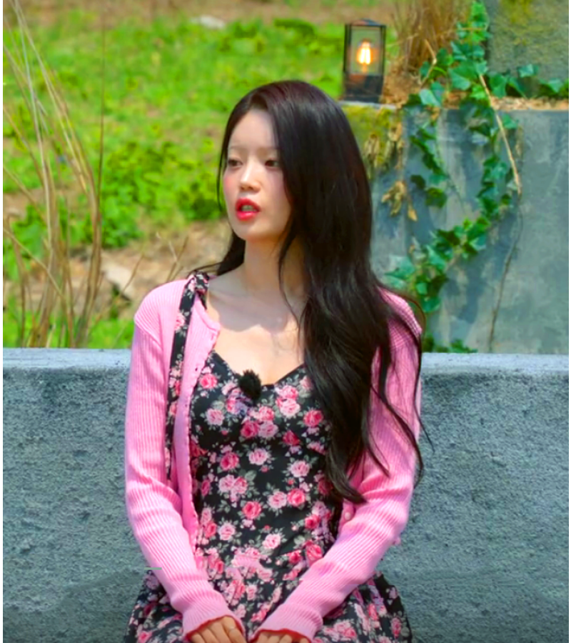If the bold beauty with a cold appearance but sociable personality Kim A-rin (김아린) from Single's Inferno 4 has captured your attention with her sharp features and calm demeanor then you definitely shouldn't miss out on this alluring ensemble consisting of a cute sun dress with dark romantic floral prints and a lovely cropped cardigan, inspired by the one she wore on the dating show!