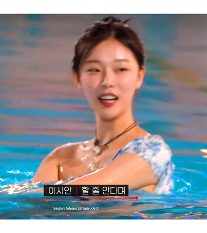 If the strikingly prim and delicately beautiful model, Lee Si-an (이시안), from Single's Inferno 4 has captured your attention with her cool and playful personality then you definitely shouldn't miss out on her casual yet statuesque and enticing wardrobe, like this toga swimsuit with an elegant double-tiered flare top and beautiful floral patterns, inspired by the one she wore in the variety show!